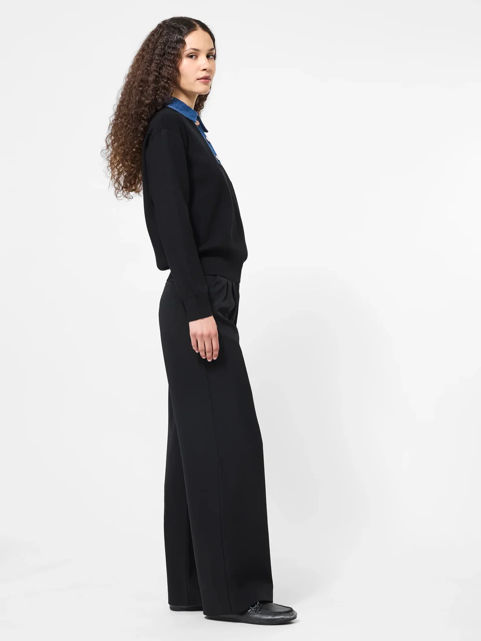 The Denim Collar Sweater brings a fresh edge to your knitwear lineup. With a flat knit body and a contrasting denim collar, it’s a cool mix of soft and structured. Finished with brushed metal buttons, this one’s all about subtle contrast and easy impact.