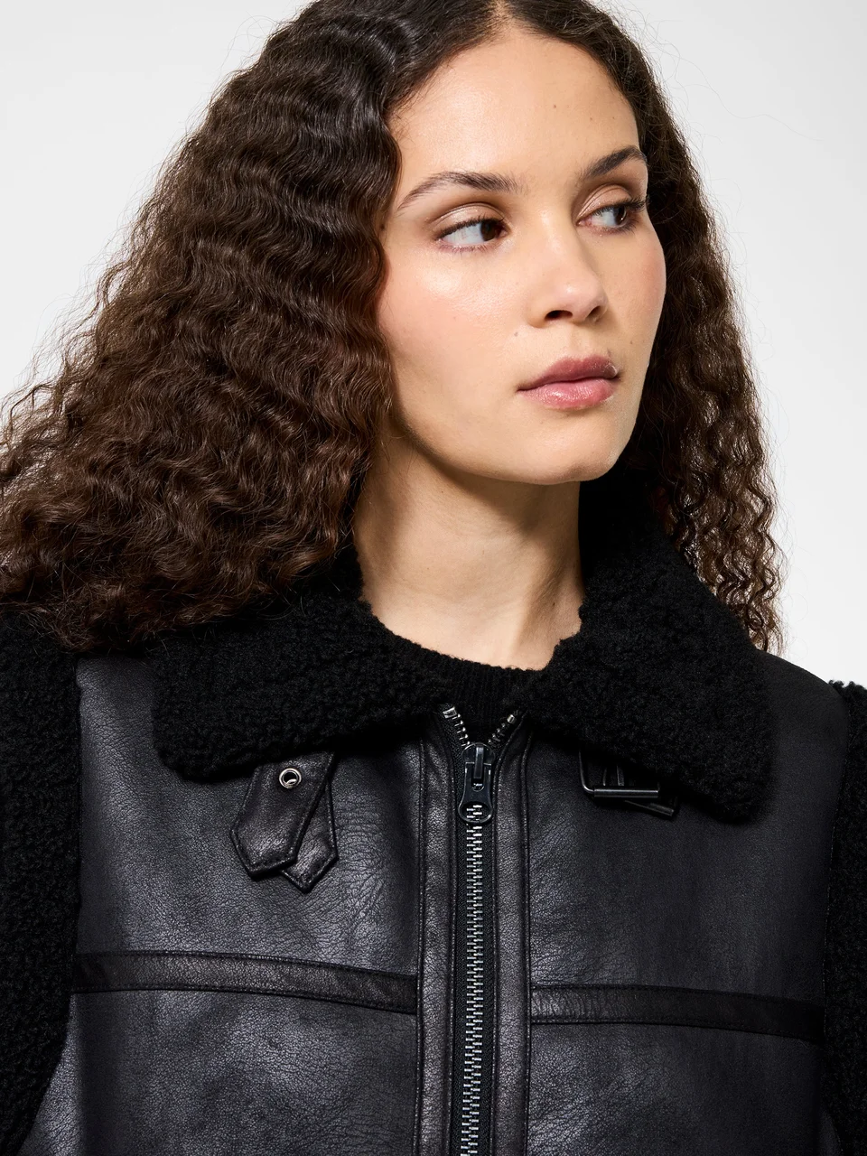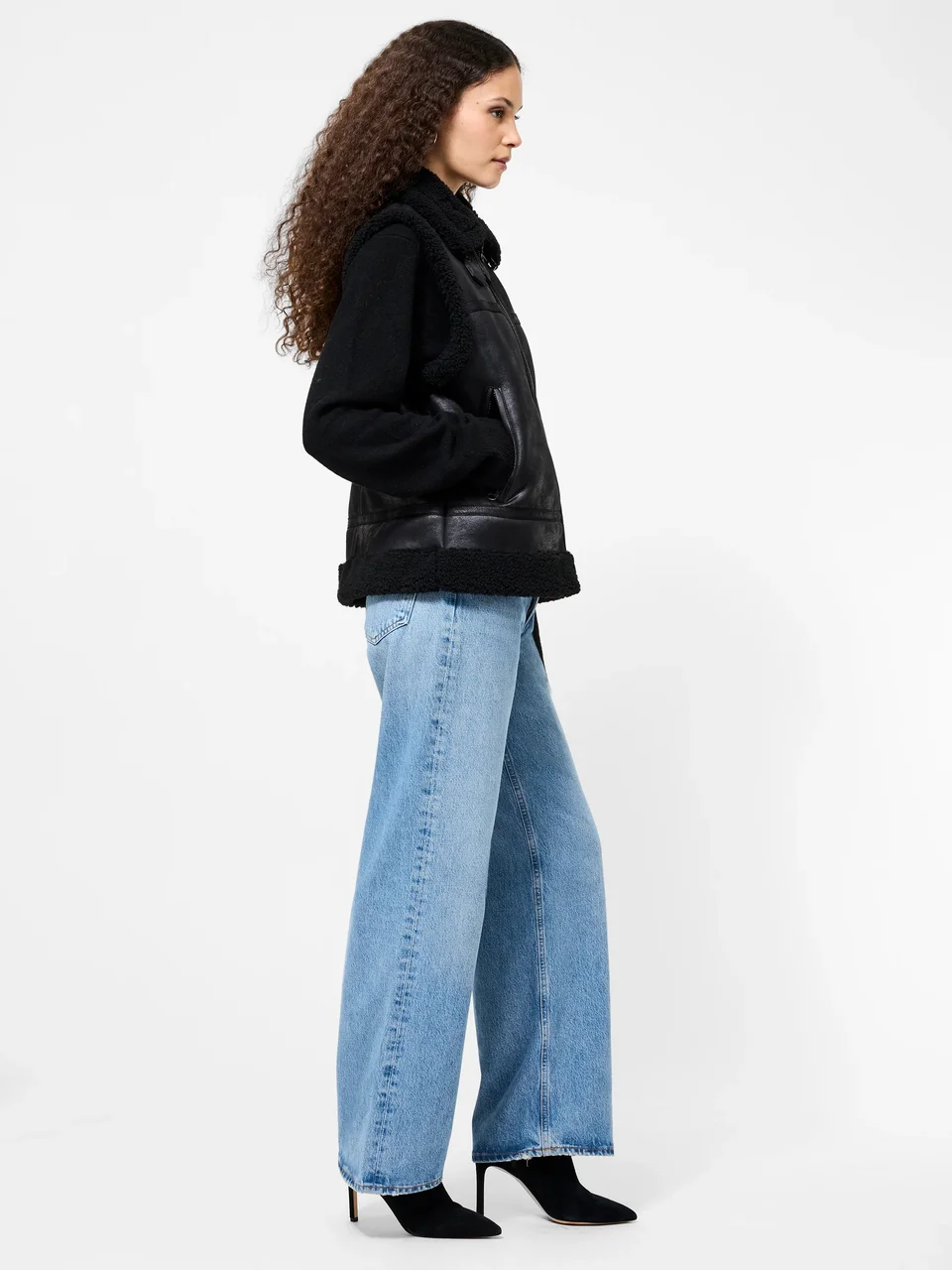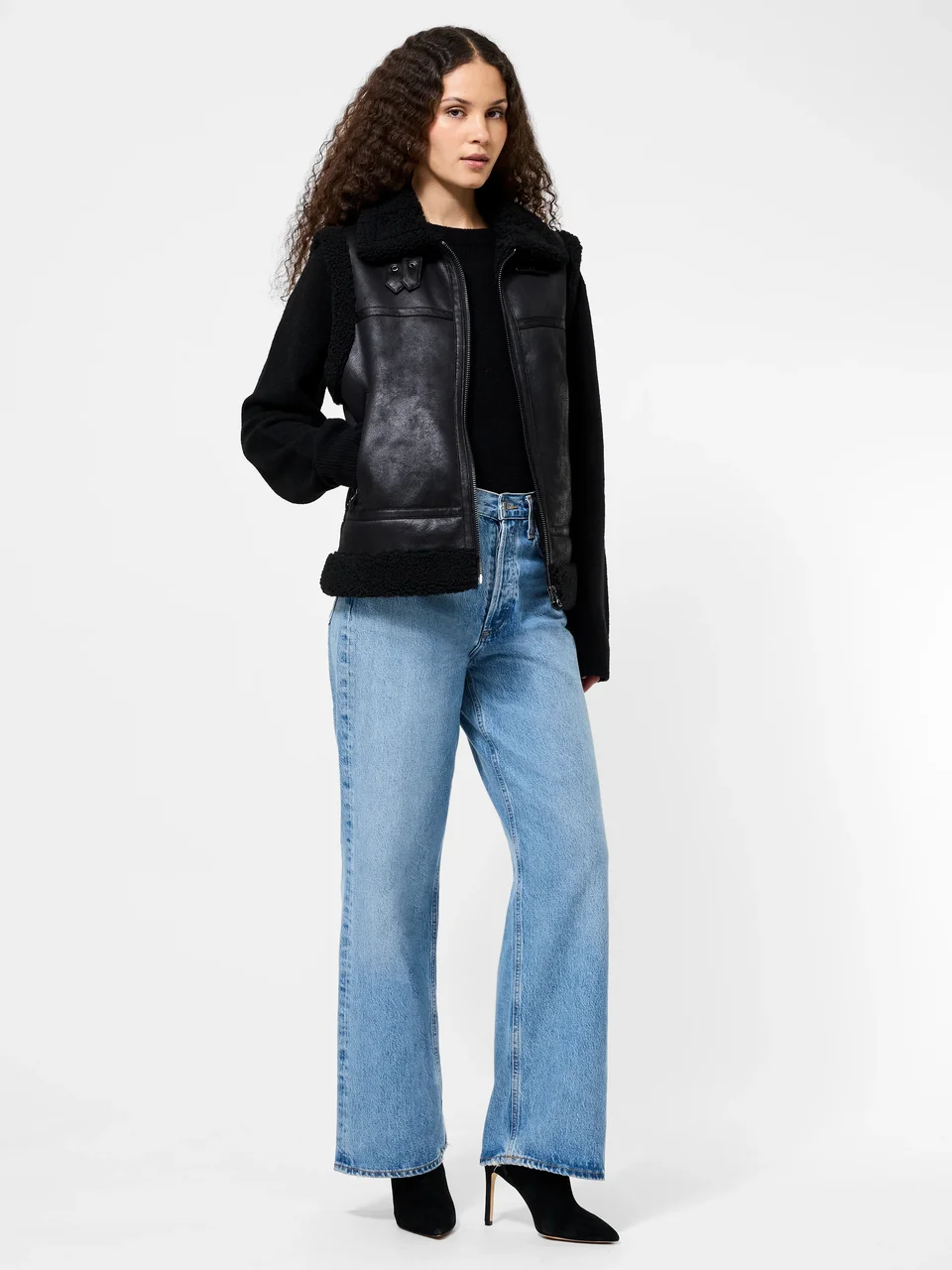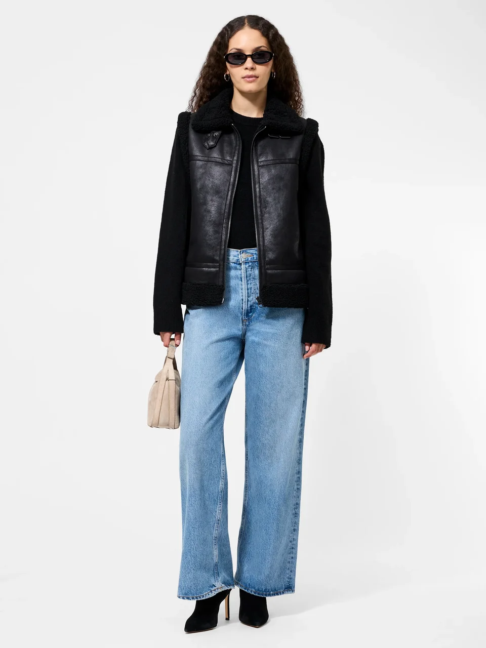 The easiest way to elevate your layers. The Camry Faux Suede Sleeveless Gilet is an oversized sleeveless vest made from textured vegan suede with a cozy faux shearling lining. Finished with tonal trim and a relaxed fit, it’s the one you’ll throw on with jeans, knits, or even over a slip dress.